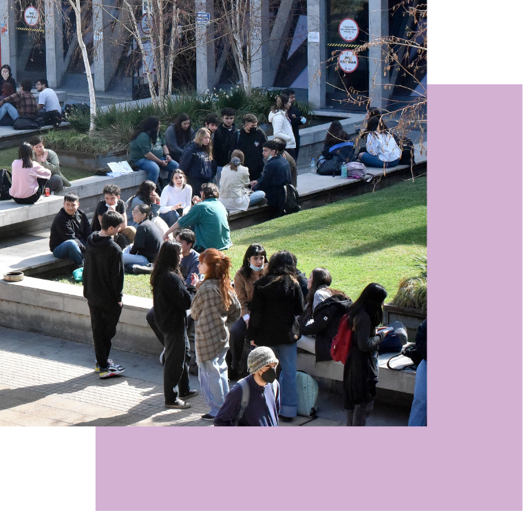 Contamos también con diversas organizaciones estudiantiles (artísticas, científicas, sociales, voluntariados, de medio ambiente) que contribuyen a la vinculación con el medio y proporcionan a nuestros estudiantes un abanico de posibilidades para participar, hacer comunidad y vida universitaria. En dae.udp.cl podrás conocer las organizaciones y sumarte a alguna de tu interés.